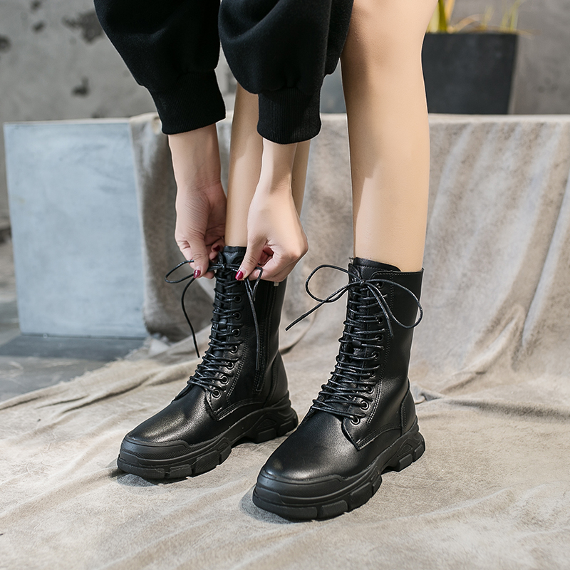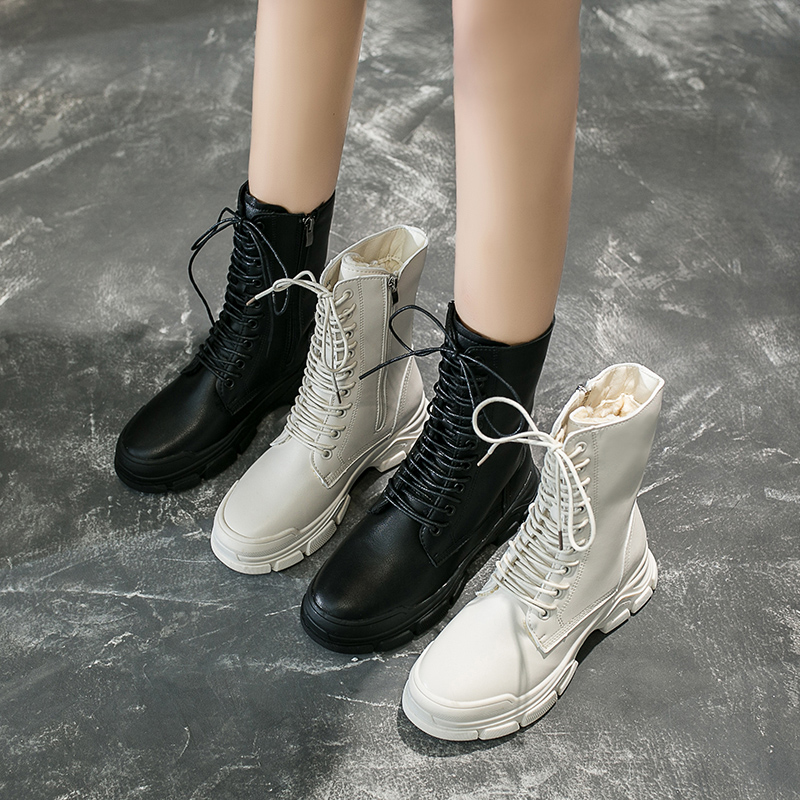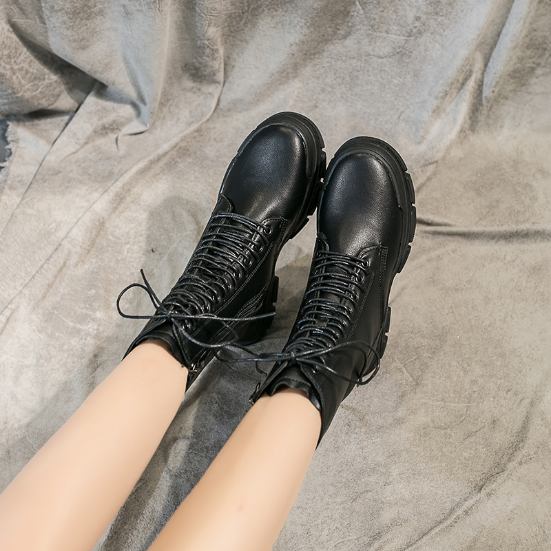 2019秋冬女靴子靴子韩版潮时尚保暖防滑马丁靴短靴圆头中跟粗跟