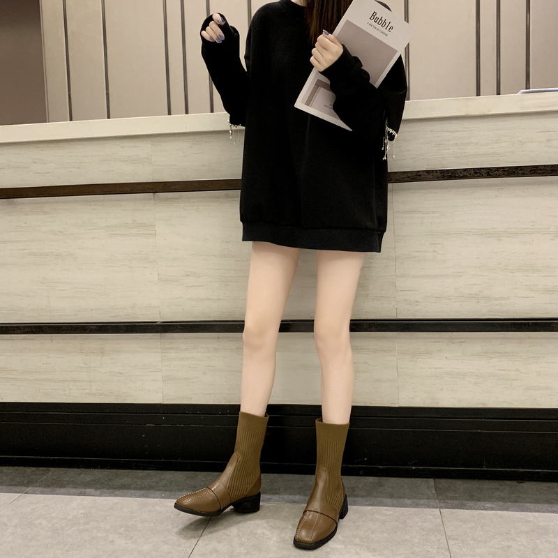 2019秋冬女靴子靴子韩版潮时尚保暖防滑马丁靴短靴粗跟防水台