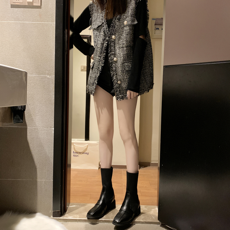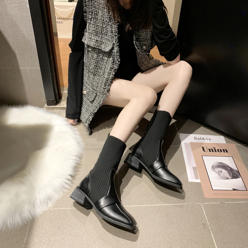2019秋冬女靴子靴子韩版潮时尚保暖防滑马丁靴短靴圆头粗跟防水台