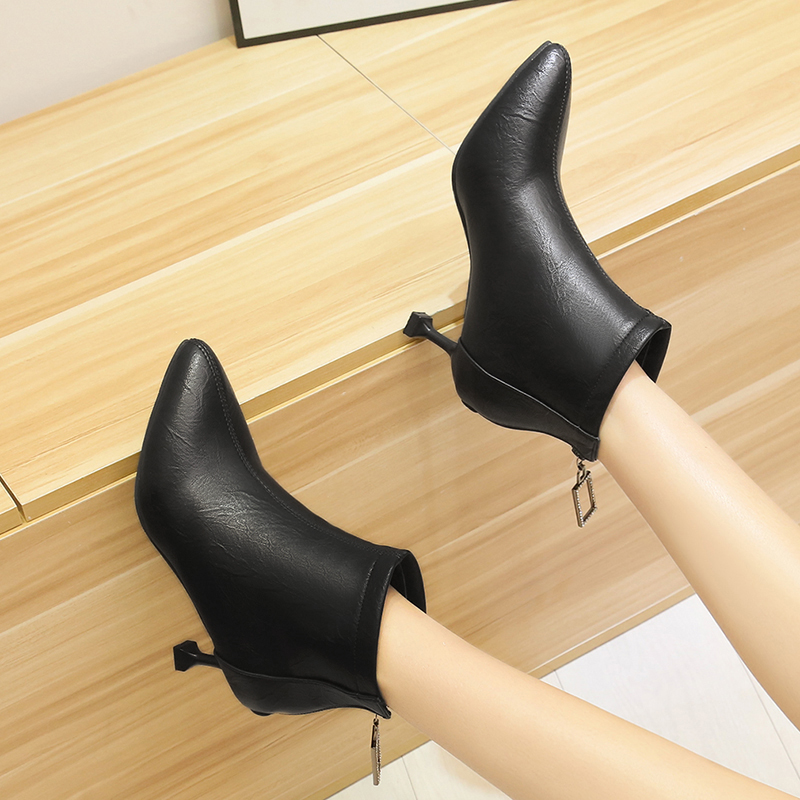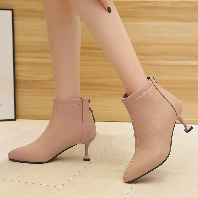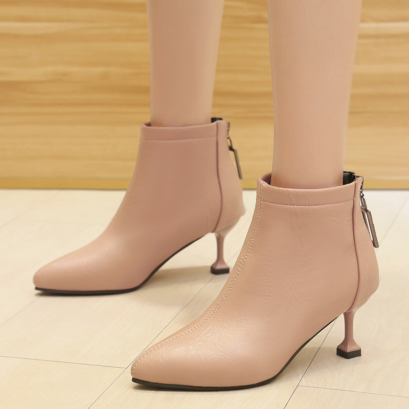 2019秋冬女靴子靴子韩版潮时尚保暖防滑切尔西靴短靴圆头 高跟鞋细跟