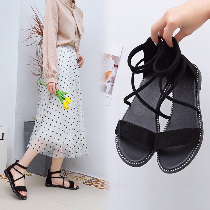 2020夏季凉鞋休闲鞋女鞋子凉鞋韩版时尚潮沙滩鞋学院布露趾平底鞋