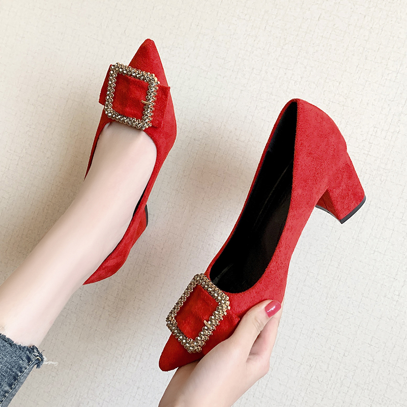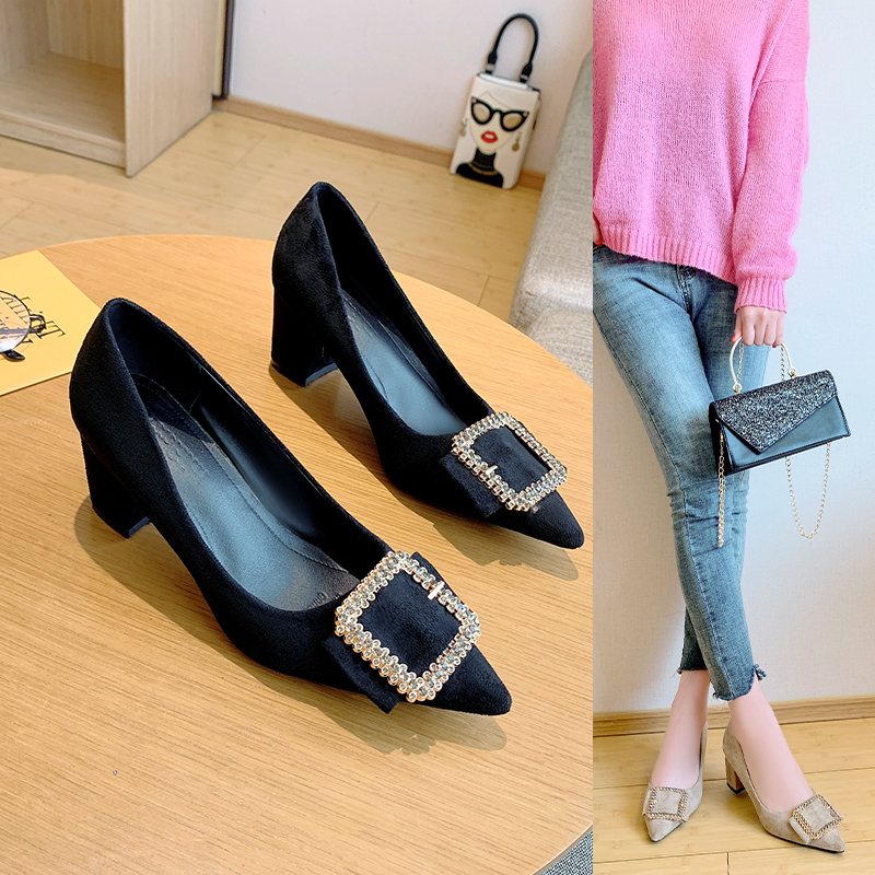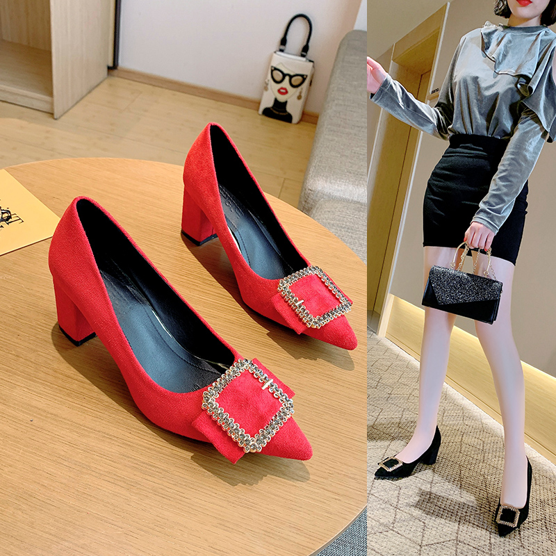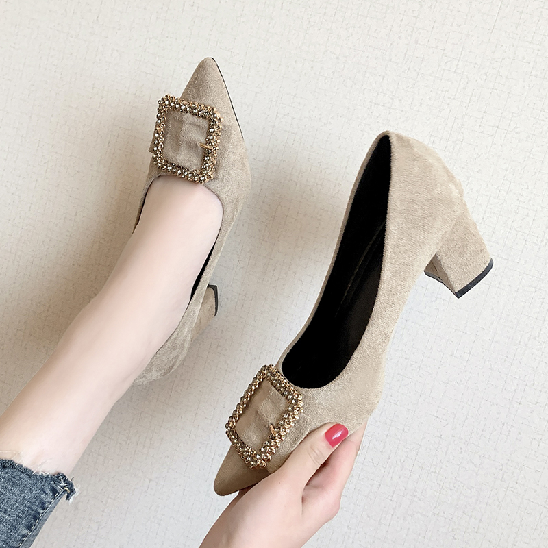 2020秋冬季新款单鞋女鞋子低帮鞋韩版时尚学生浅口尖头高跟鞋粗跟