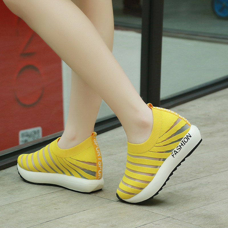 2020秋冬季新款单鞋女鞋子低帮鞋韩版时尚学生网布圆头中跟松糕鞋