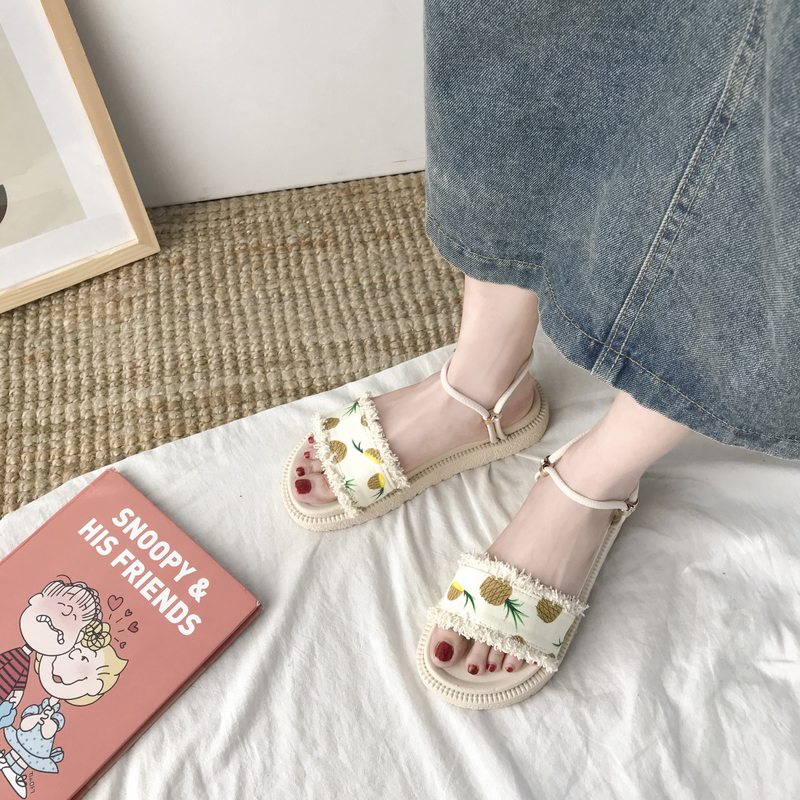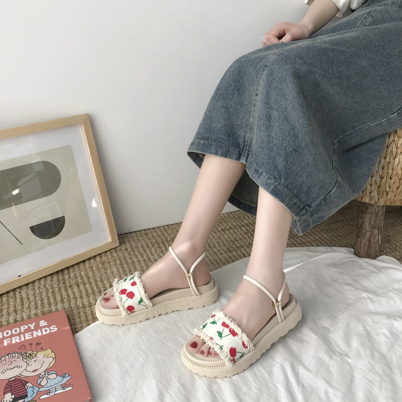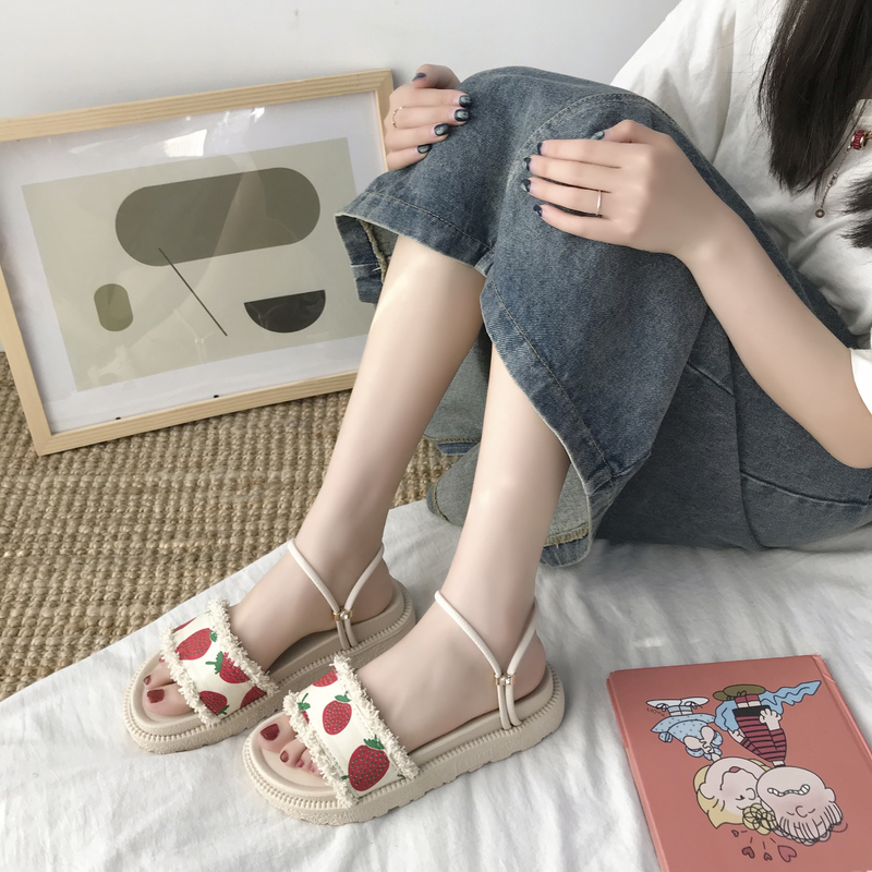 2020夏季凉鞋休闲鞋女鞋子凉鞋韩版时尚潮沙滩鞋布露趾松糕鞋