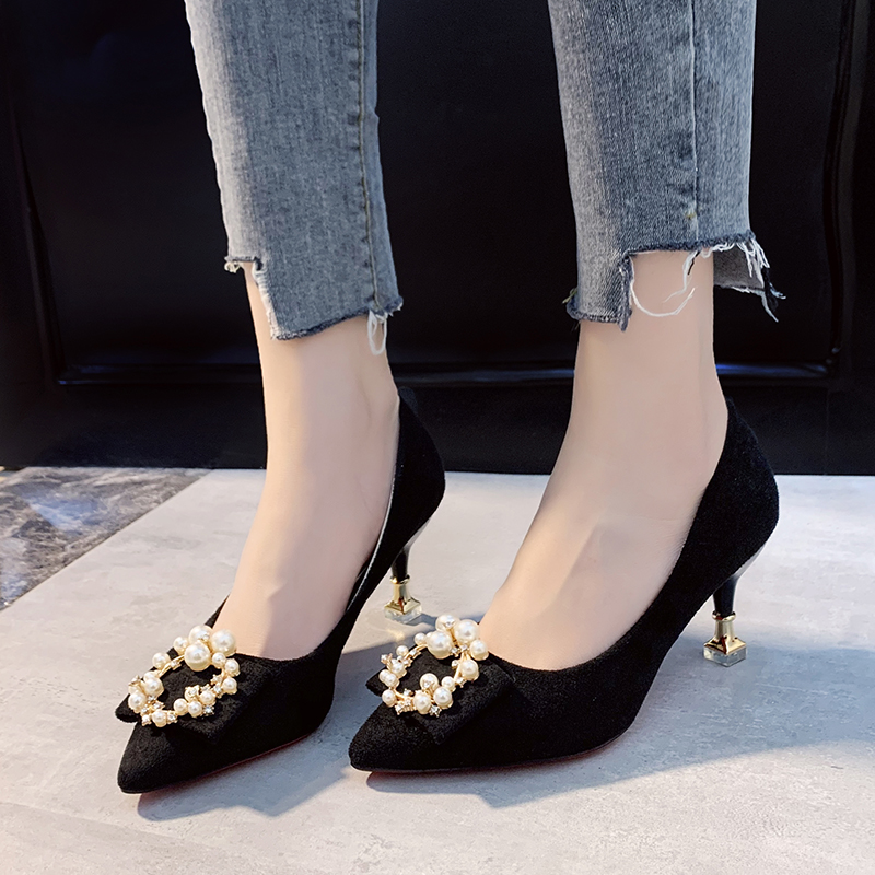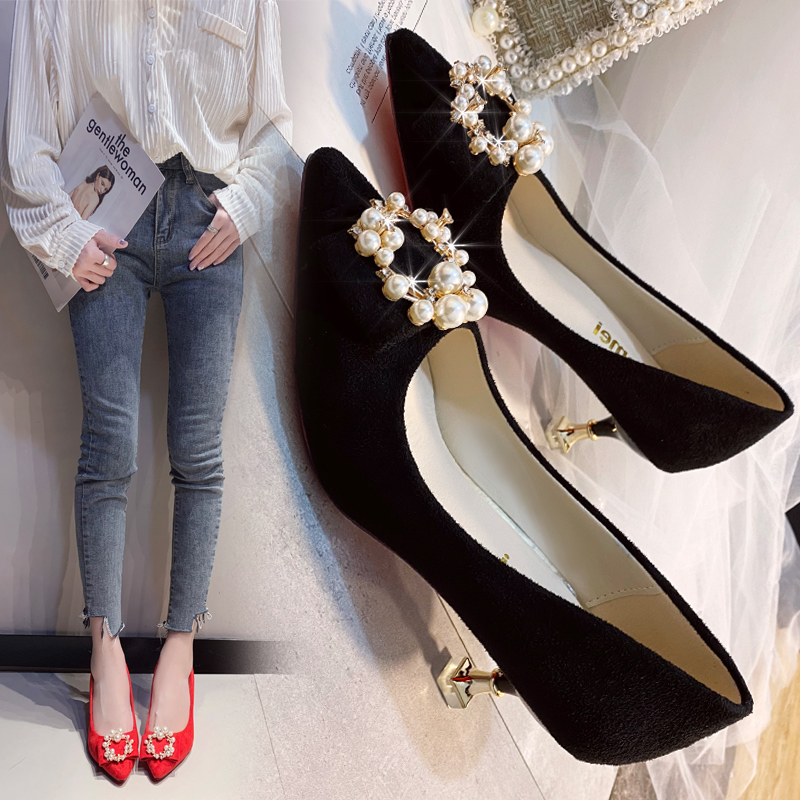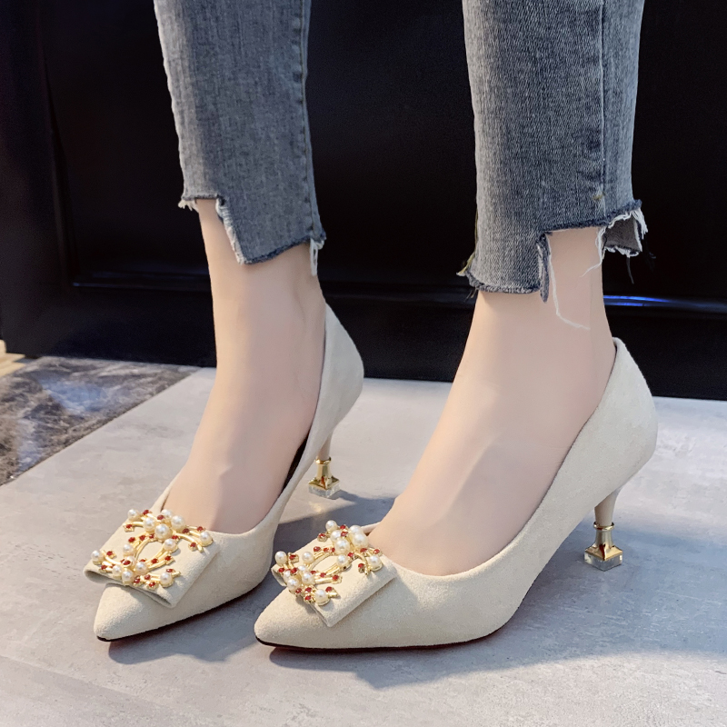 2022春夏季新款单鞋女鞋子低帮鞋韩版时尚学生绒面浅口尖头高跟鞋细跟