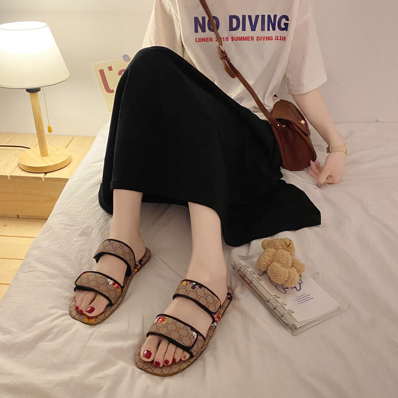 2022夏季凉拖鞋休闲鞋女鞋子拖鞋韩版潮时尚学生绒面低跟
