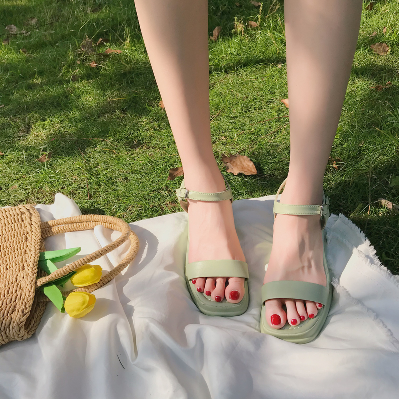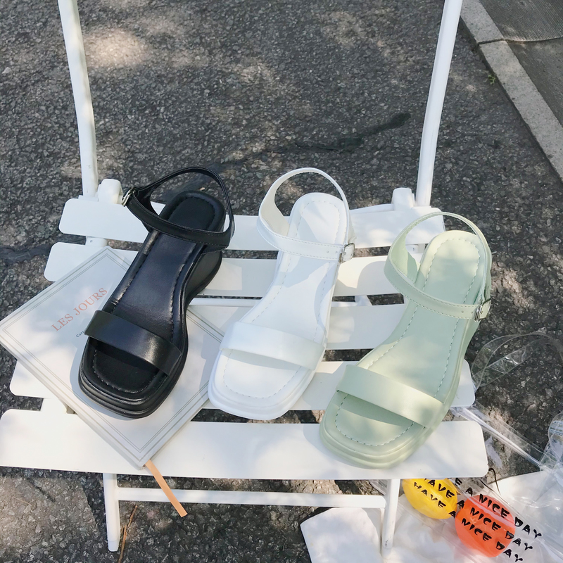 2022夏季凉鞋休闲鞋女鞋子凉鞋韩版时尚潮沙滩鞋露趾中跟松糕鞋防水台