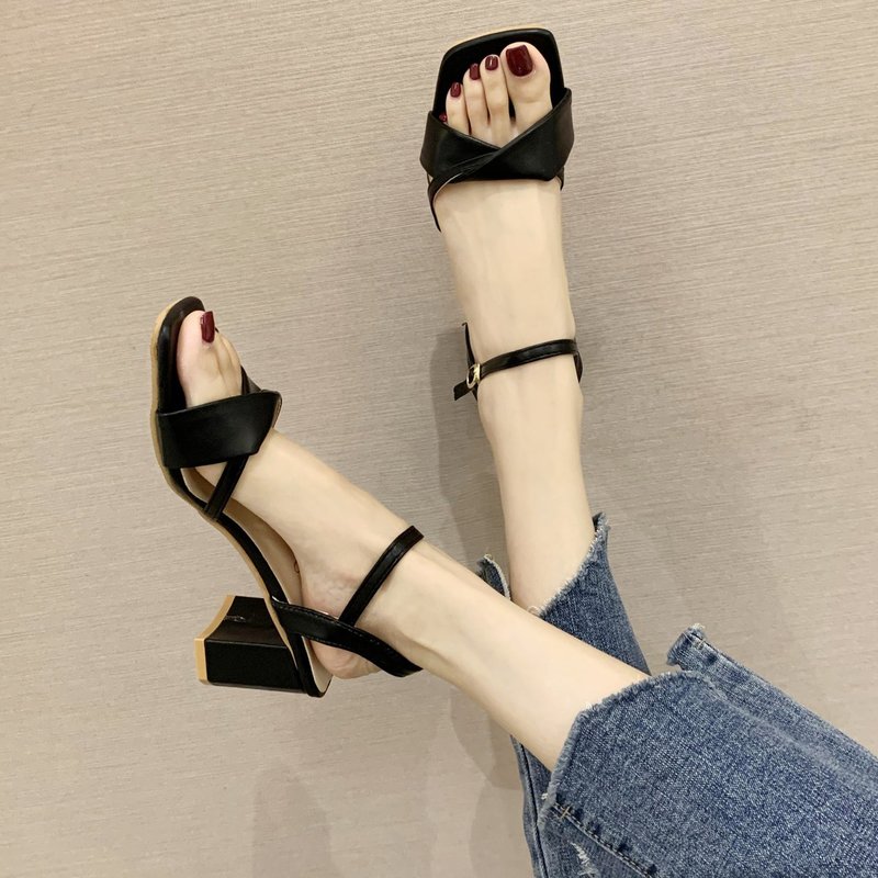 2022夏季凉鞋休闲鞋女鞋子凉鞋韩版时尚潮沙滩鞋露趾高跟鞋粗跟