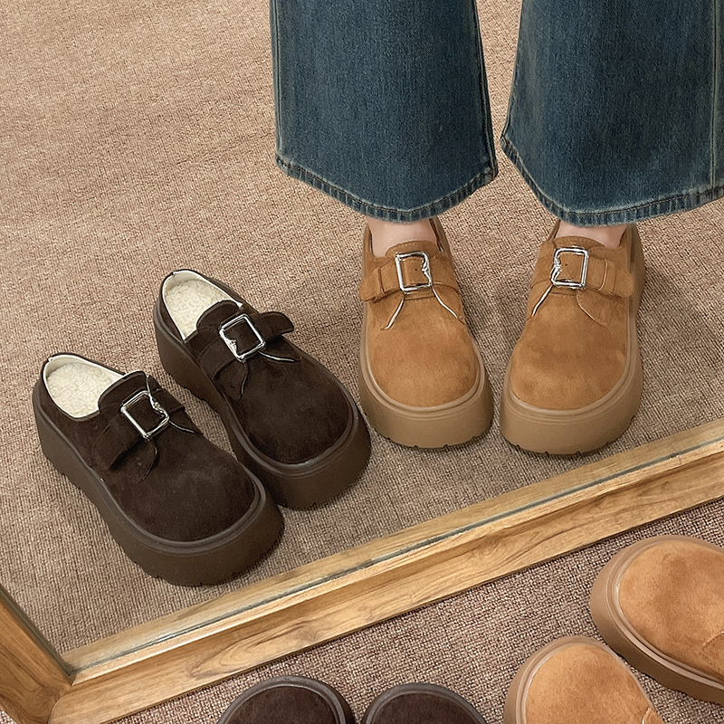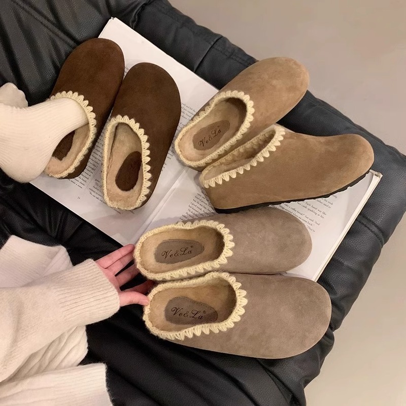 女靴子靴子韩版潮时尚保暖防滑绒面短靴尖头 高跟鞋粗跟
