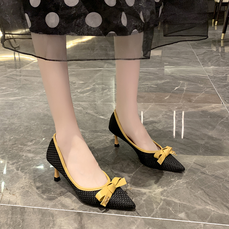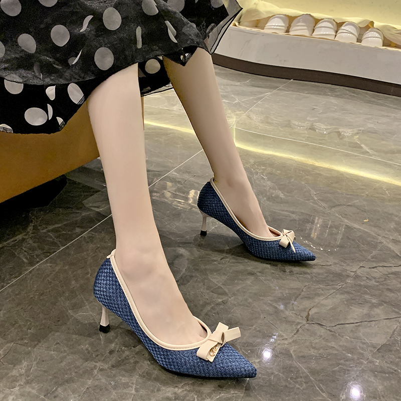 2022春夏季新款单鞋女鞋子低帮鞋韩版时尚学生浅口尖头高跟鞋细跟
