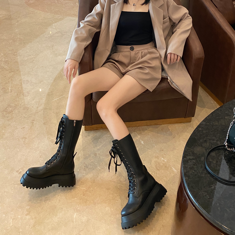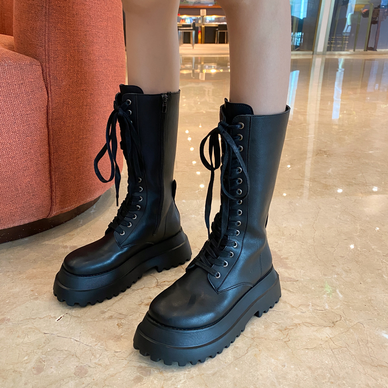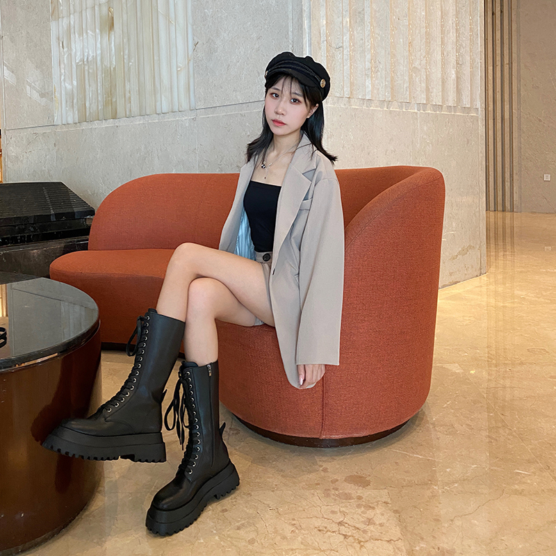 女靴子靴子韩版潮时尚保暖防滑2020年春季马丁靴中筒靴圆头中跟粗跟