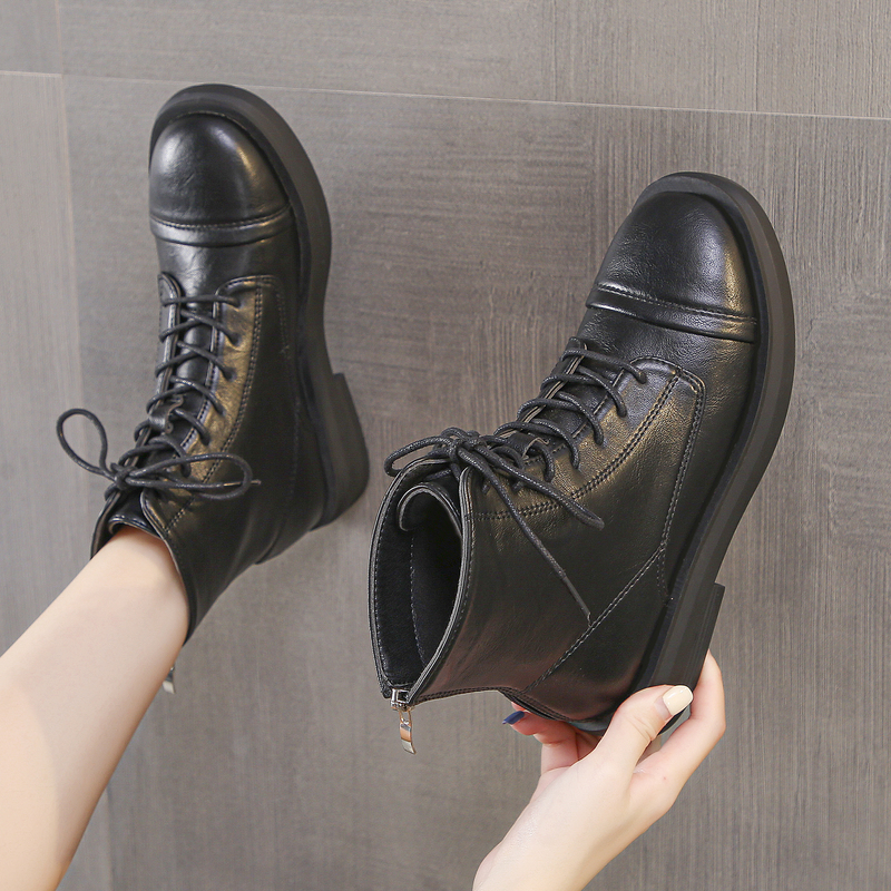 女靴子靴子韩版潮时尚保暖防滑2020年夏季学院马丁靴短靴粗跟蝴蝶结防水台