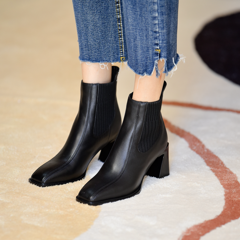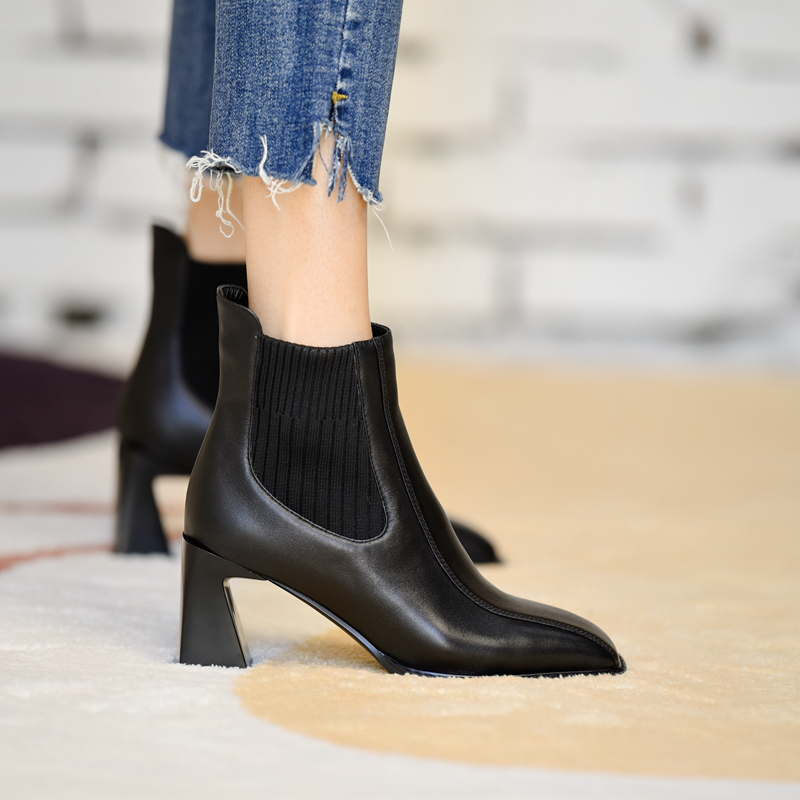 女靴子靴子韩版潮时尚保暖防滑短靴尖头中跟粗跟