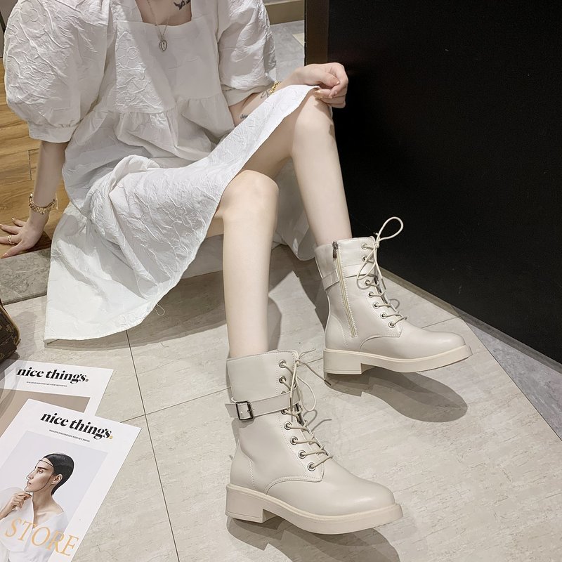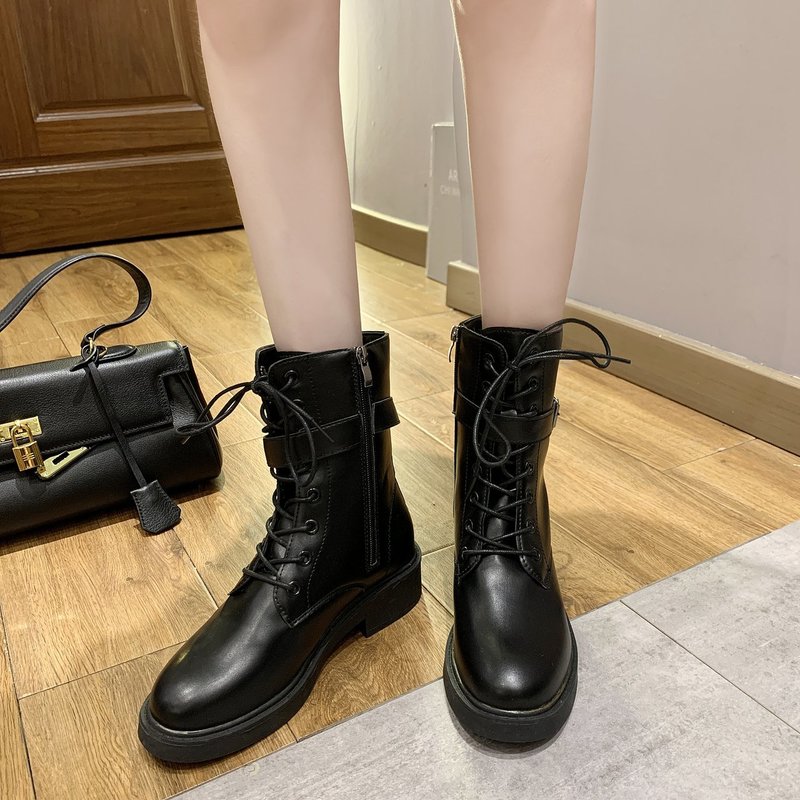 女靴子靴子韩版潮时尚保暖防滑短靴圆头中跟粗跟
