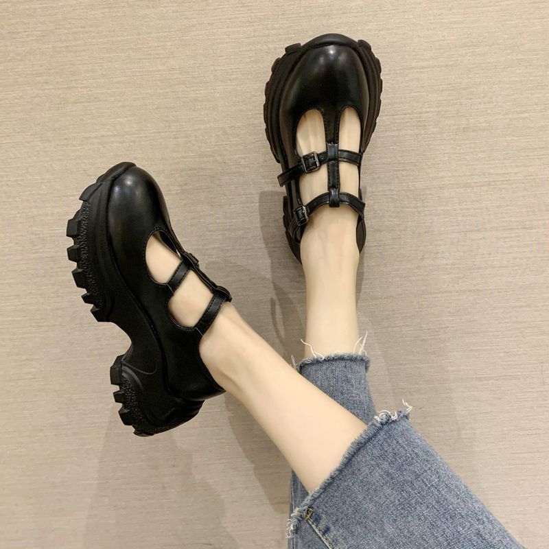 2022春夏季新款单鞋女鞋子低帮鞋韩版时尚学生浅口圆头中跟松糕鞋