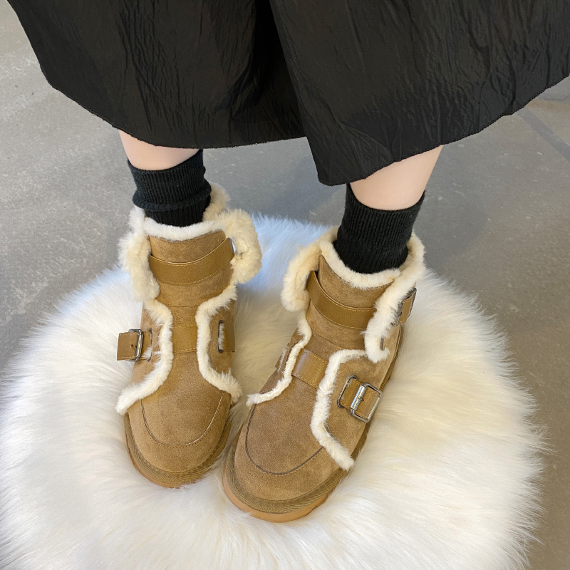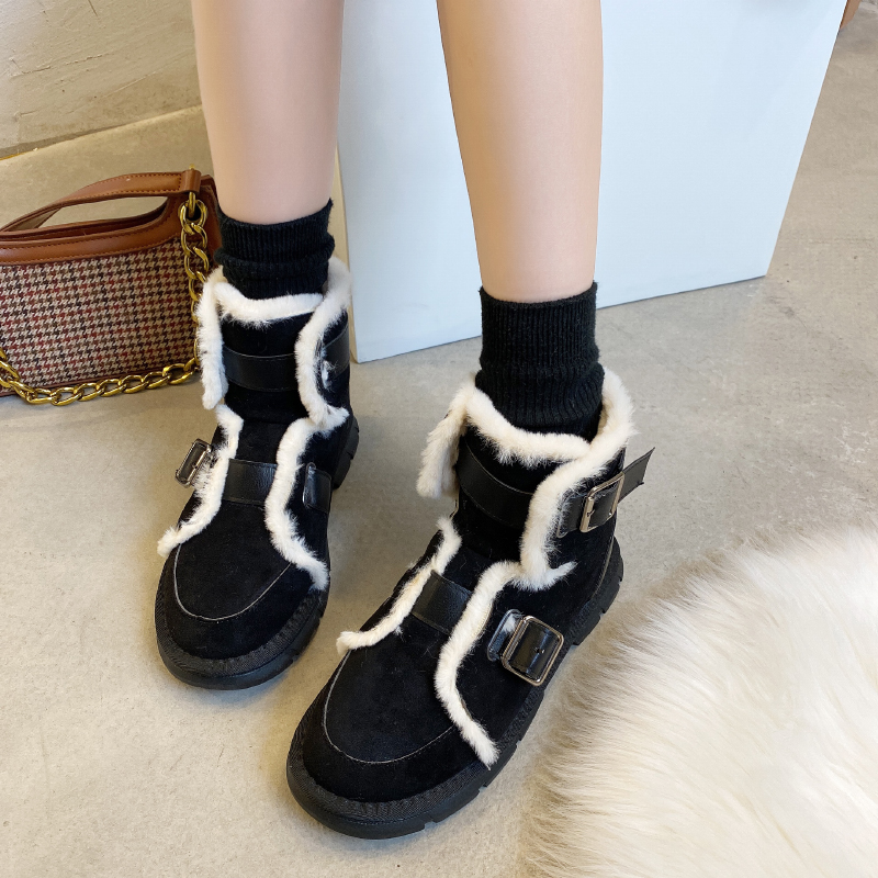 女靴子靴子韩版潮时尚保暖防滑绒面短靴圆头