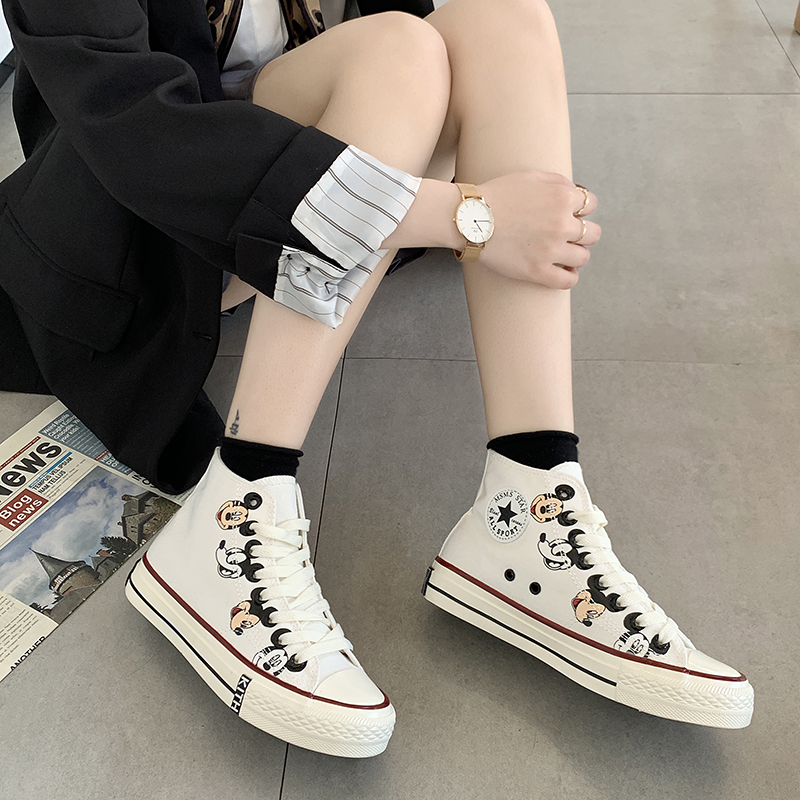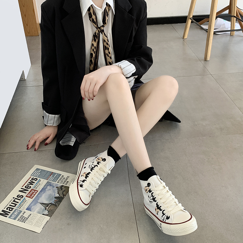 一脚蹬懒人鞋白色帆布鞋女鞋子帆布鞋欧美英伦时尚学生高帮