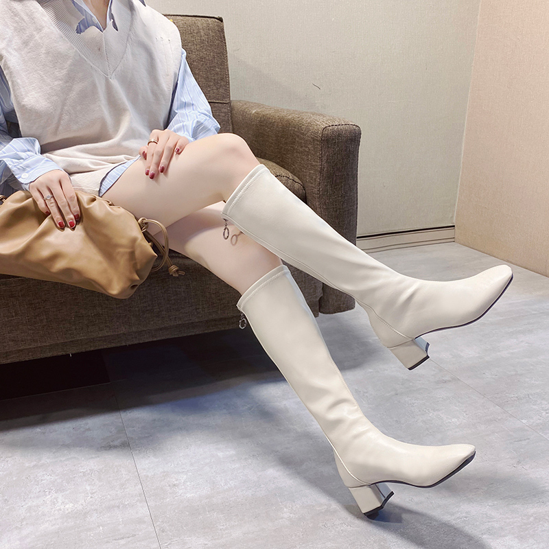 女靴子靴子韩版潮时尚保暖防滑高筒靴圆头中跟粗跟