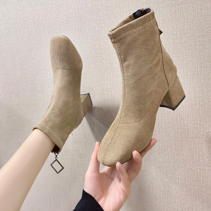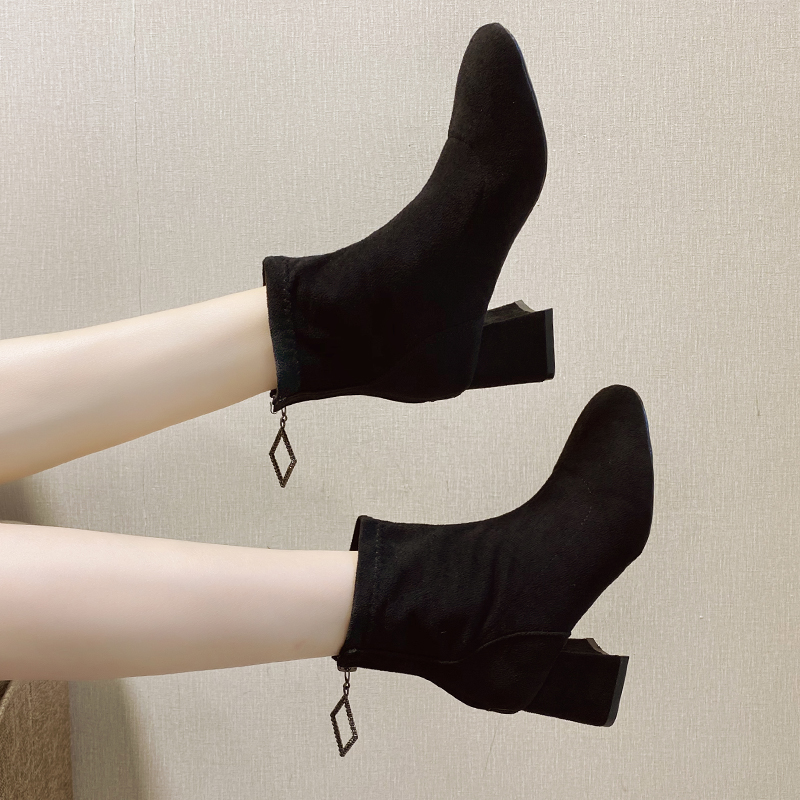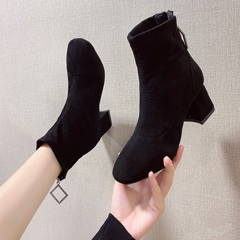 女靴子靴子韩版潮时尚保暖防滑绒面短靴圆头中跟粗跟