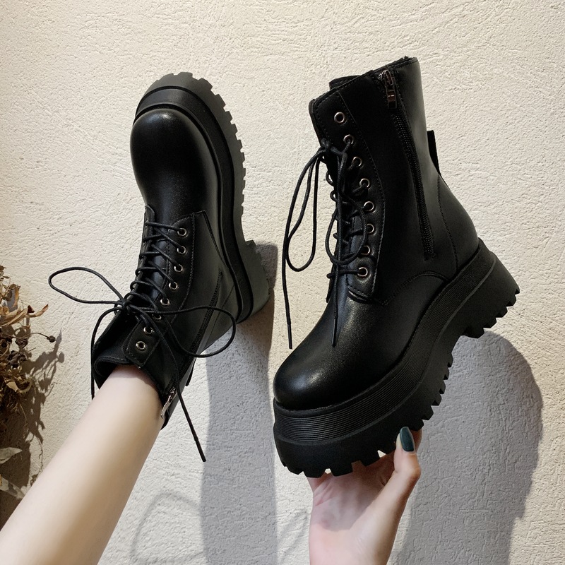 女靴子靴子韩版潮时尚保暖防滑短靴圆头中跟粗跟