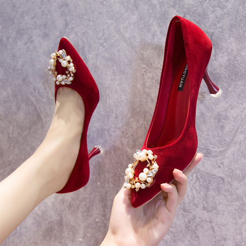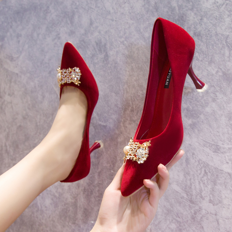 2022春夏季新款单鞋女鞋子低帮鞋韩版时尚学生绒面浅口尖头高跟鞋细跟