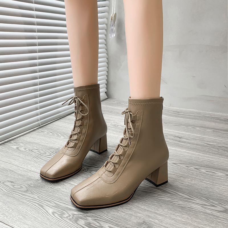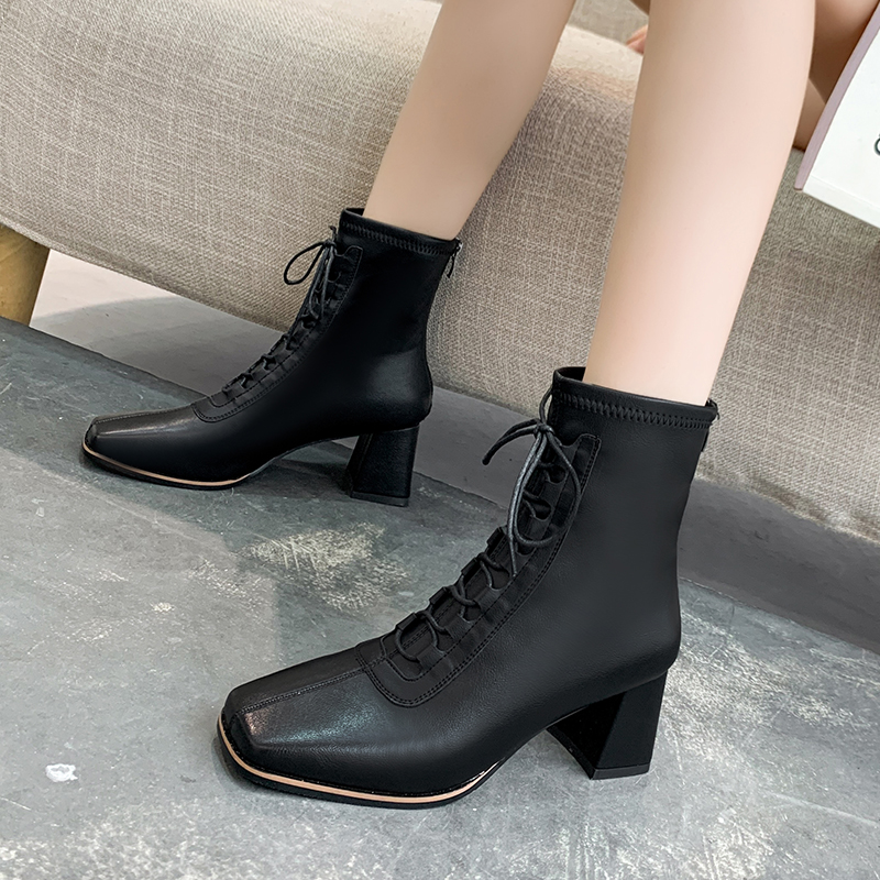 女靴子靴子韩版潮时尚保暖防滑短靴 高跟鞋粗跟
