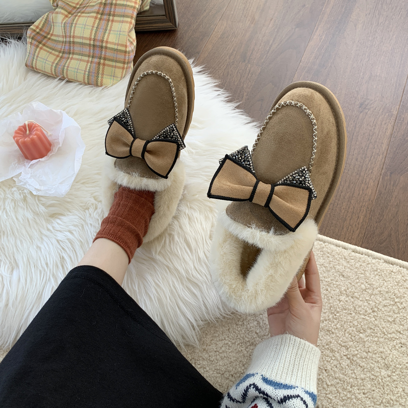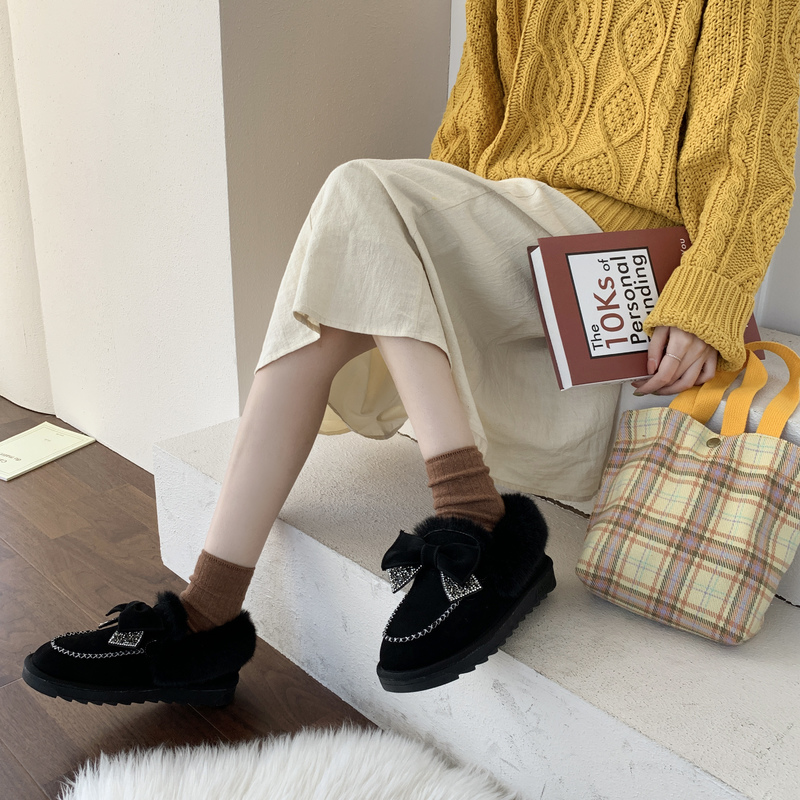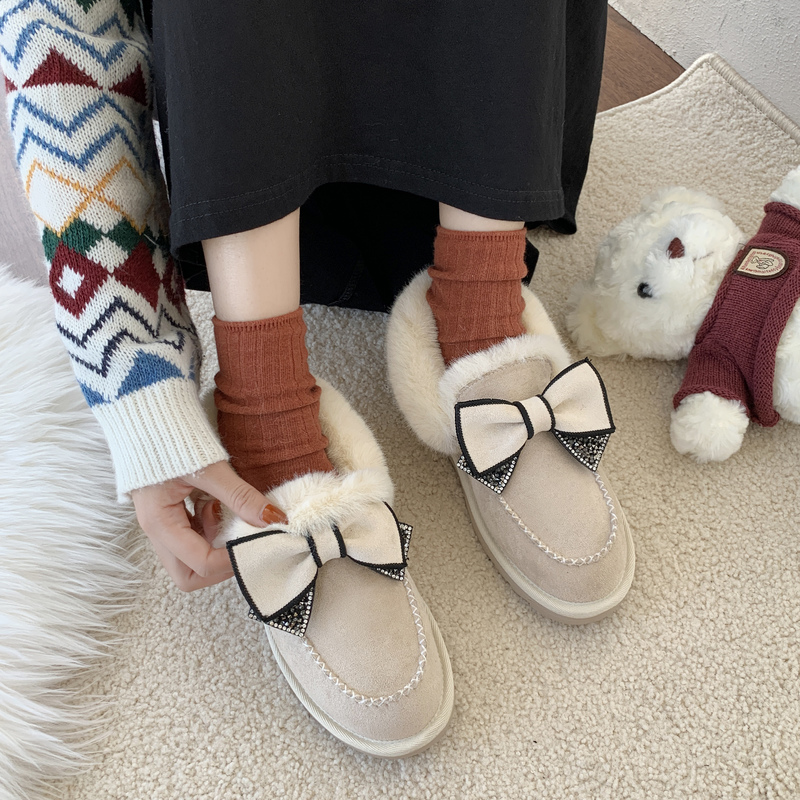 女靴子靴子韩版潮时尚保暖防滑绒面短靴圆头