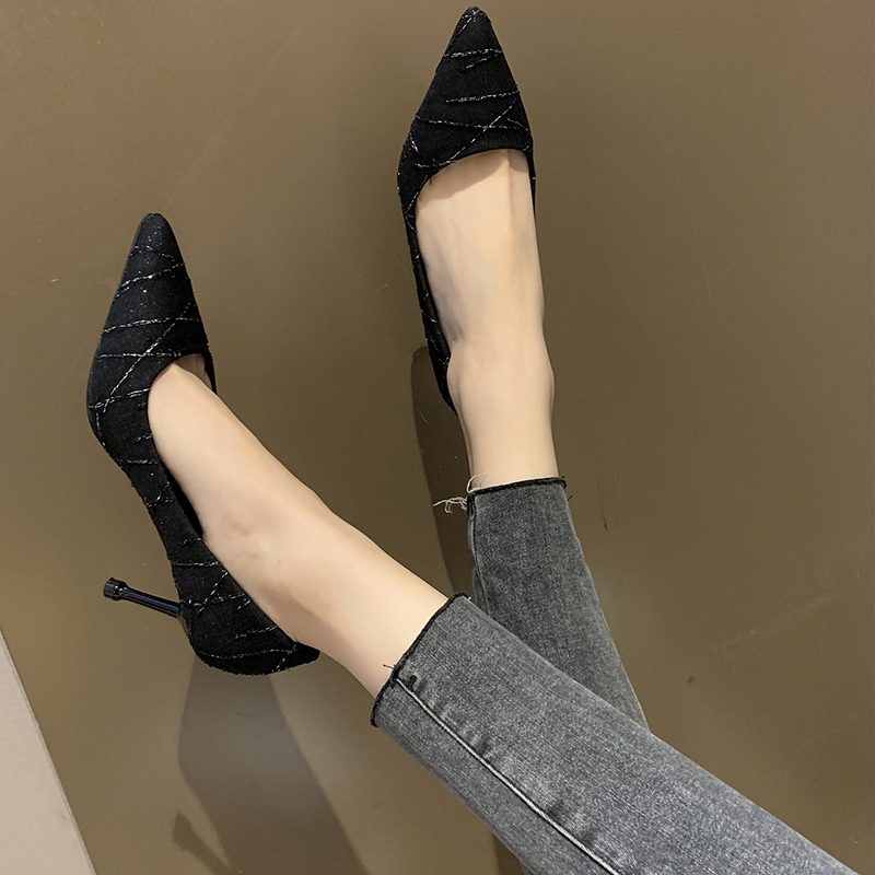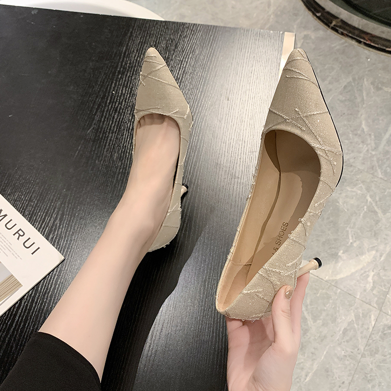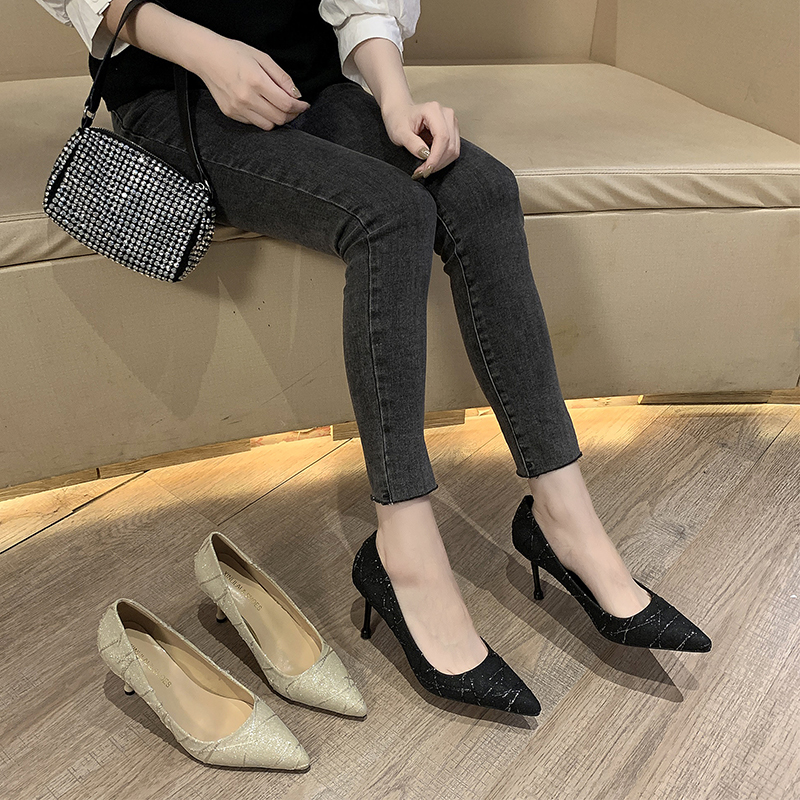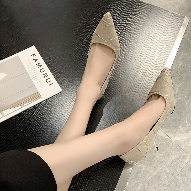 2022春夏季新款单鞋女鞋子低帮鞋韩版时尚学生浅口尖头高跟鞋细跟