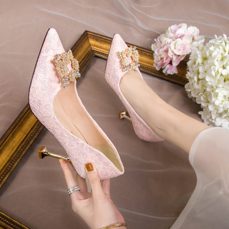 2022春夏季新款单鞋女鞋子低帮鞋韩版时尚学生绒面浅口尖头高跟鞋细跟