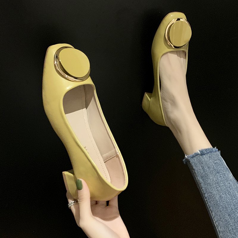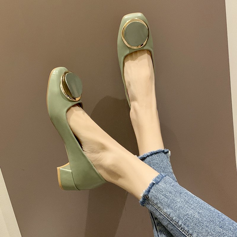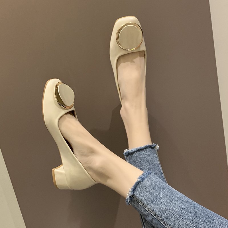 2022春夏季新款单鞋女鞋子低帮鞋韩版时尚学生浅口圆头中跟粗跟