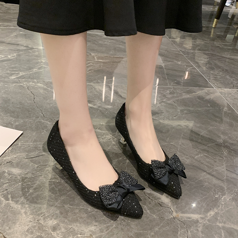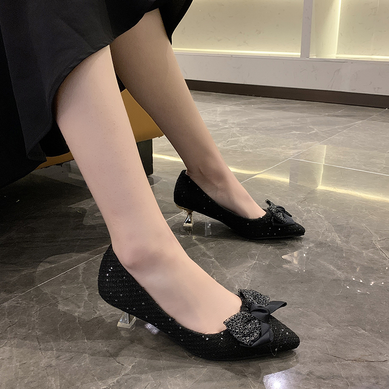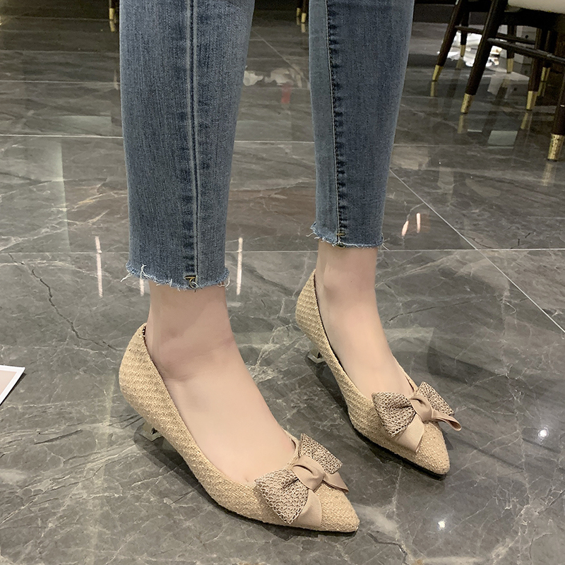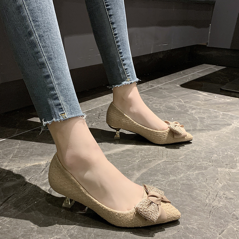 2022春夏季新款单鞋女鞋子低帮鞋韩版时尚学生绒面浅口尖头高跟鞋细跟