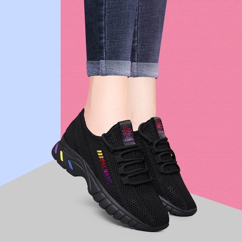 2022春夏季新款单鞋女鞋子低帮鞋韩版时尚学生网布圆头中跟松糕鞋