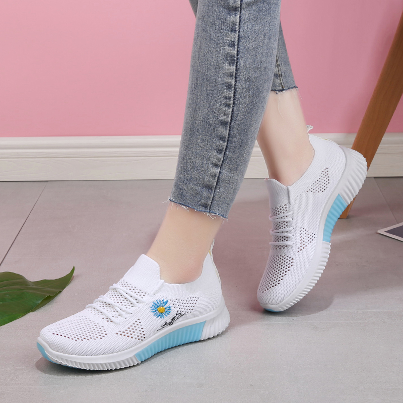2022春夏季新款单鞋女鞋子低帮鞋韩版时尚学生网布圆头中跟松糕鞋
