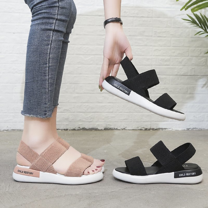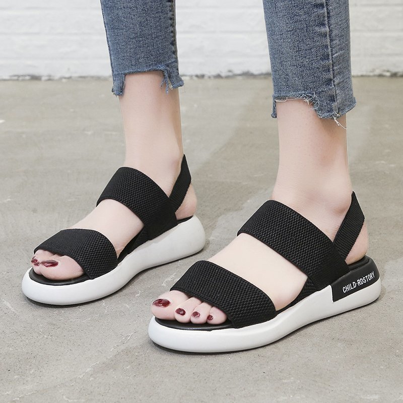 2022夏季凉鞋休闲鞋女鞋子凉鞋韩版时尚潮沙滩鞋布露趾中跟松糕鞋