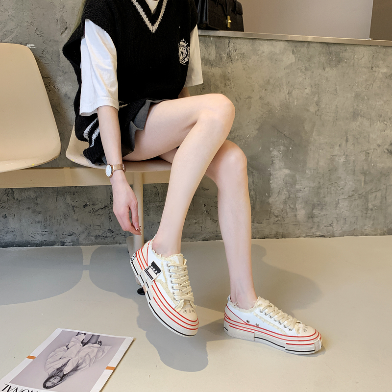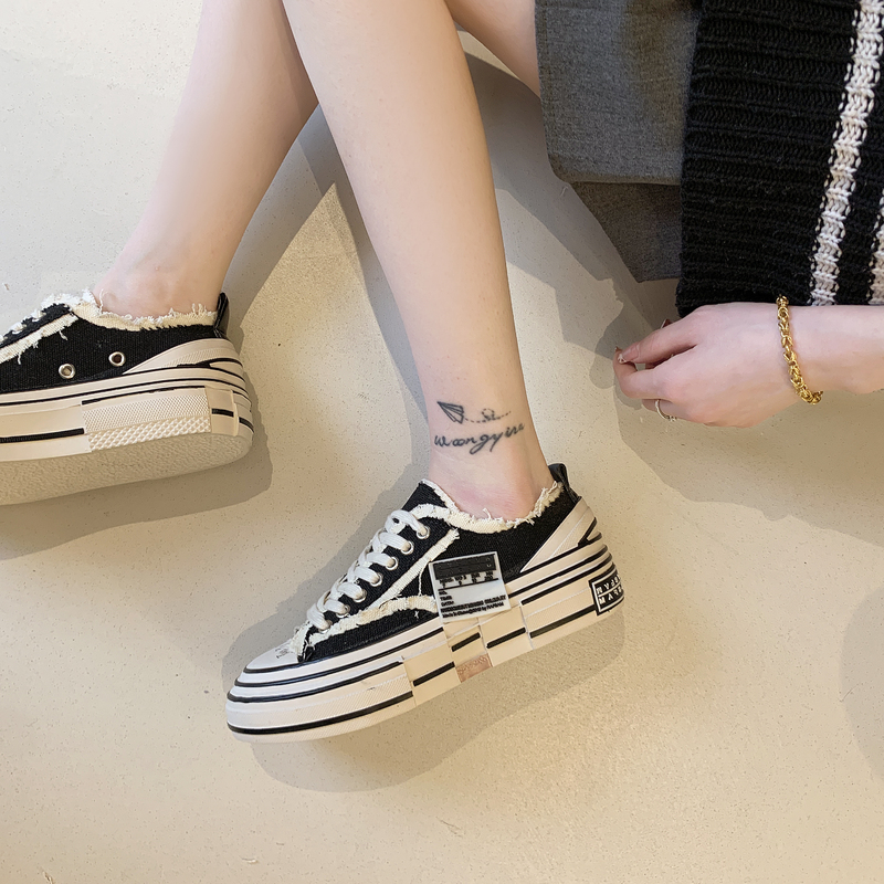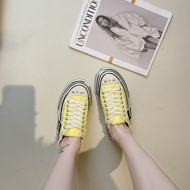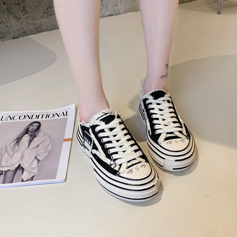 一脚蹬懒人鞋白色帆布鞋女鞋子帆布鞋欧美英伦时尚学生低帮