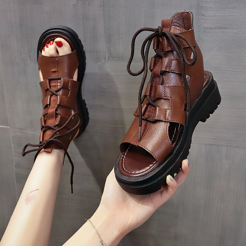 2021夏季凉鞋休闲鞋女鞋子凉鞋韩版时尚潮沙滩鞋露趾中跟松糕鞋
