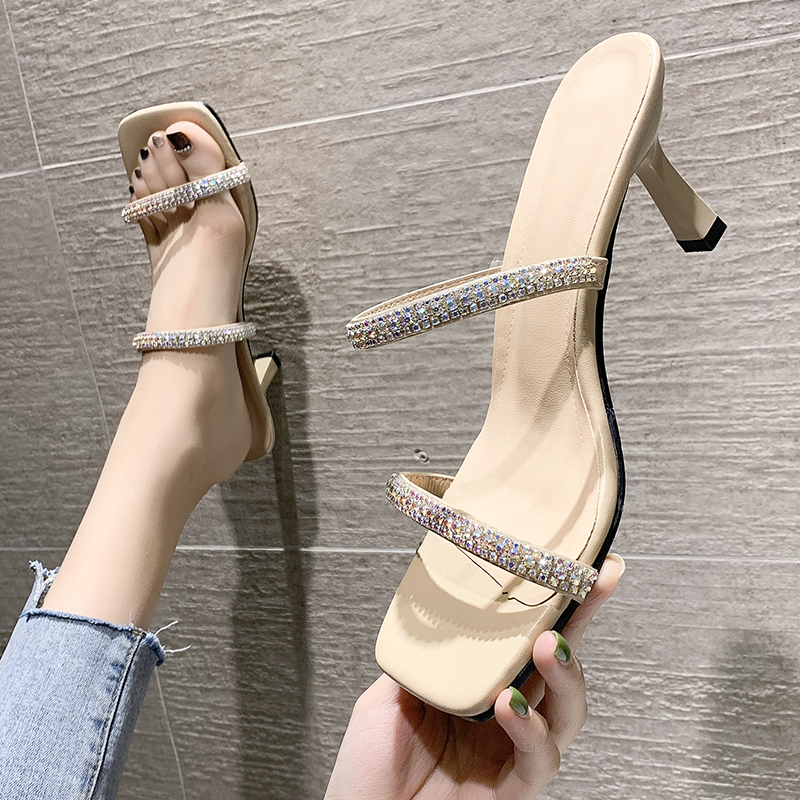 2021夏季凉拖鞋休闲鞋女鞋子拖鞋韩版潮时尚学生高跟鞋细跟