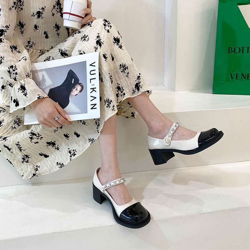 2021春夏季新款单鞋女鞋子低帮鞋韩版时尚学生圆头中跟粗跟