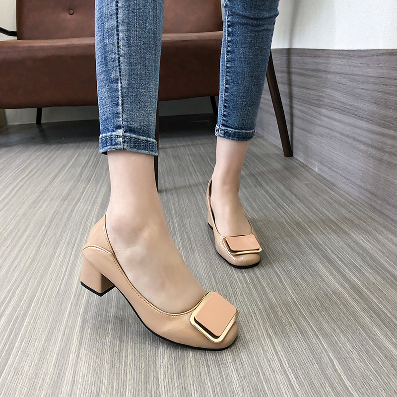 2021春夏季新款单鞋女鞋子低帮鞋韩版时尚学生圆头中跟粗跟