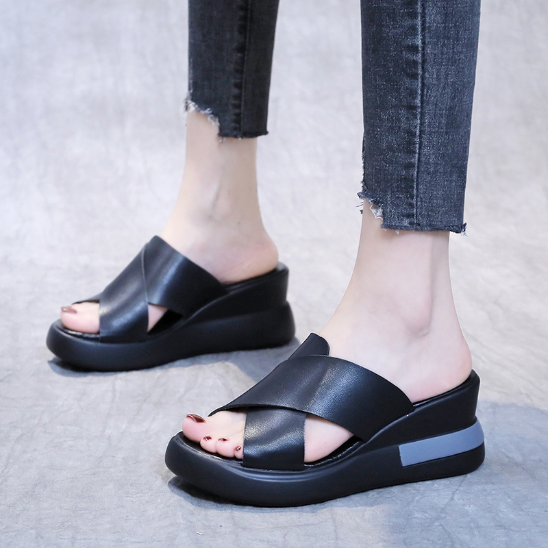 2021夏季凉拖鞋休闲鞋女鞋子拖鞋韩版潮时尚学生中跟松糕鞋