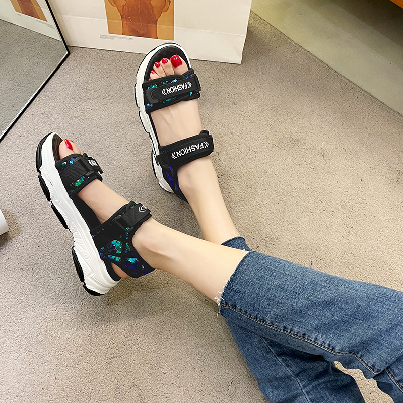 2021夏季凉鞋休闲鞋女鞋子凉鞋韩版时尚潮沙滩鞋露趾平跟
