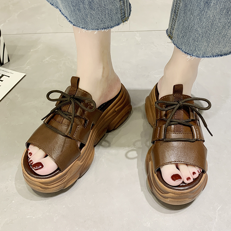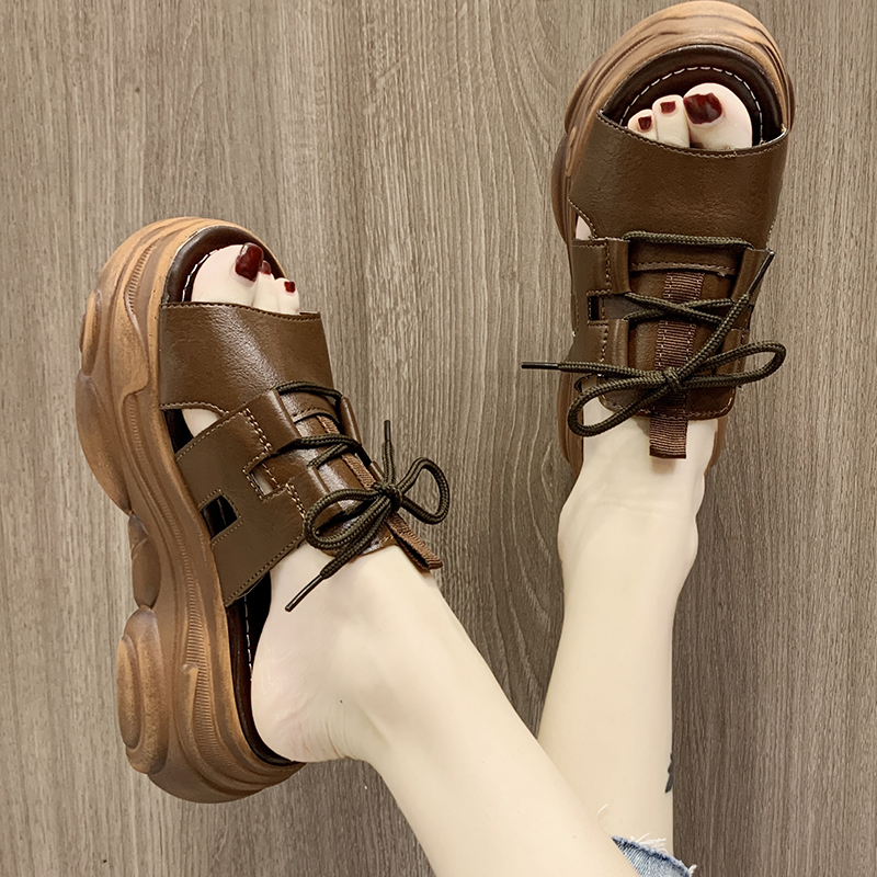 2021夏季凉拖鞋休闲鞋女鞋子拖鞋韩版潮时尚学生中跟松糕鞋