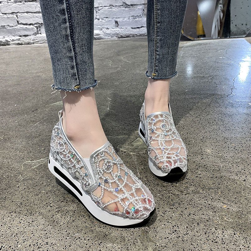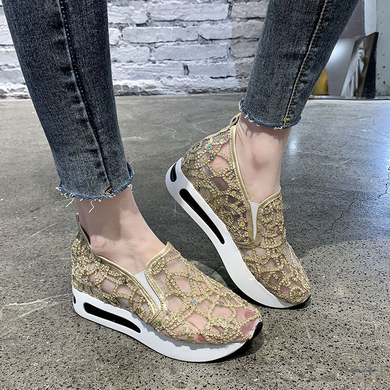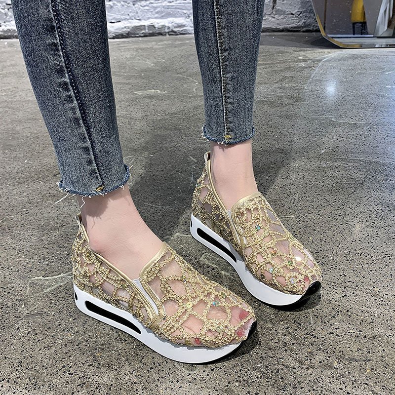 2021春夏季新款单鞋女鞋子低帮鞋韩版时尚学生网布圆头中跟松糕鞋