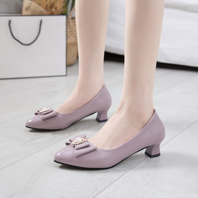 2021春夏季新款单鞋女鞋子低帮鞋韩版时尚学生浅口尖头中跟粗跟