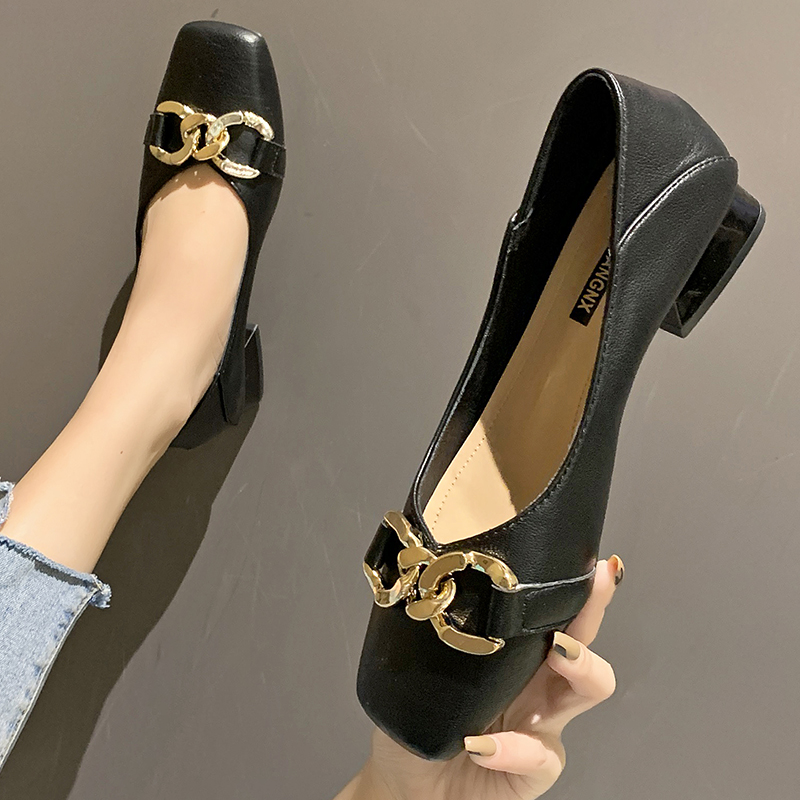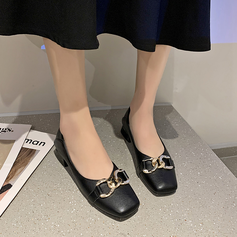 2021春夏季新款单鞋女鞋子低帮鞋韩版时尚学生圆头中跟粗跟