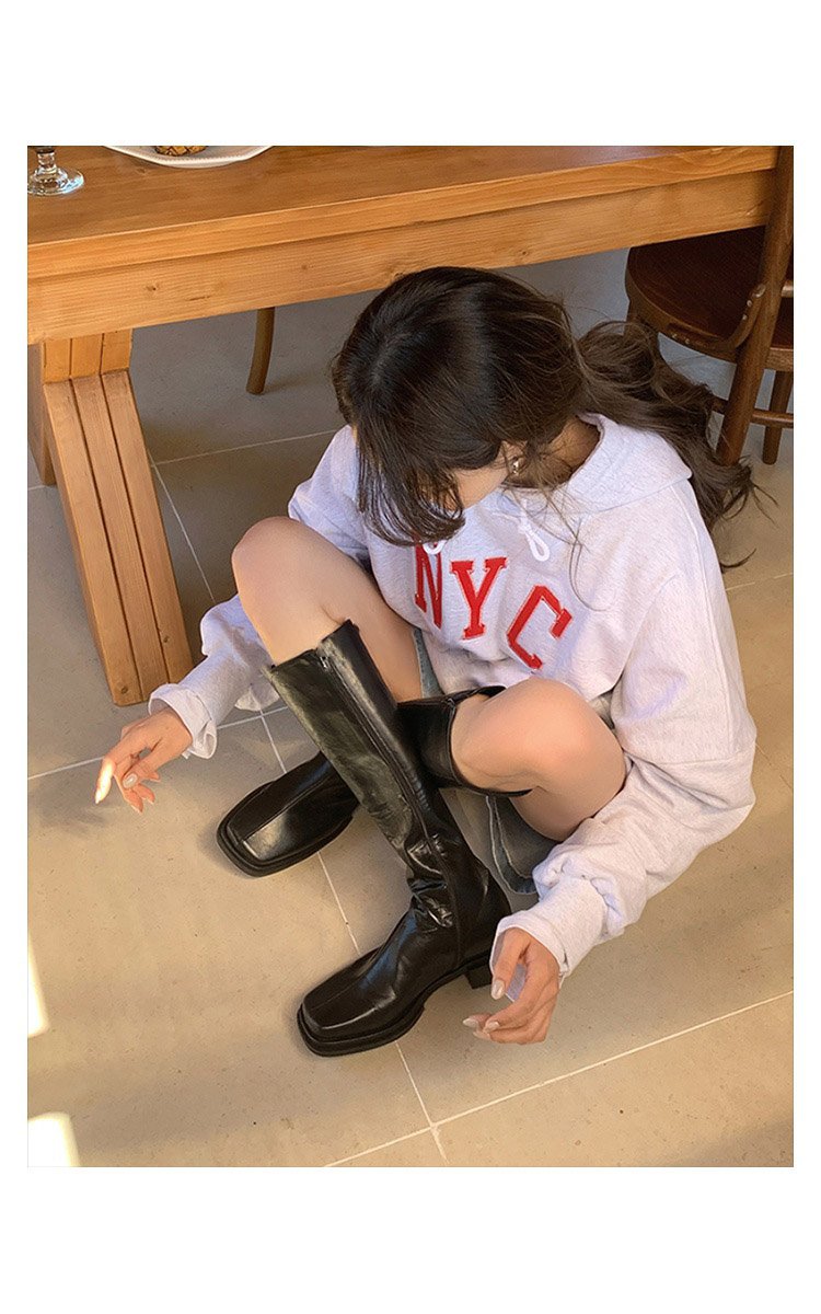 女靴子靴子韩版潮时尚保暖防滑长靴圆头 高跟鞋粗跟