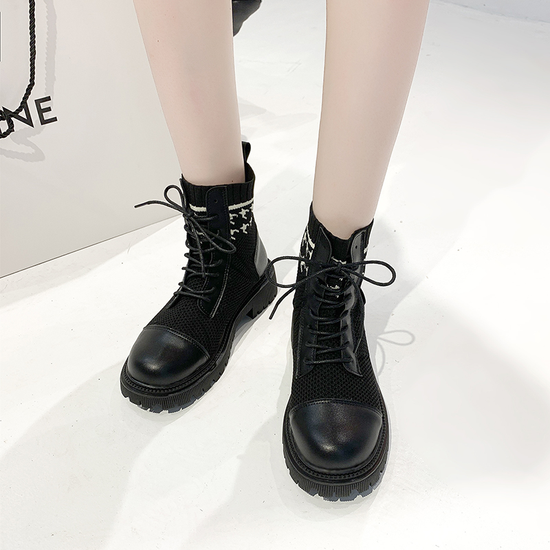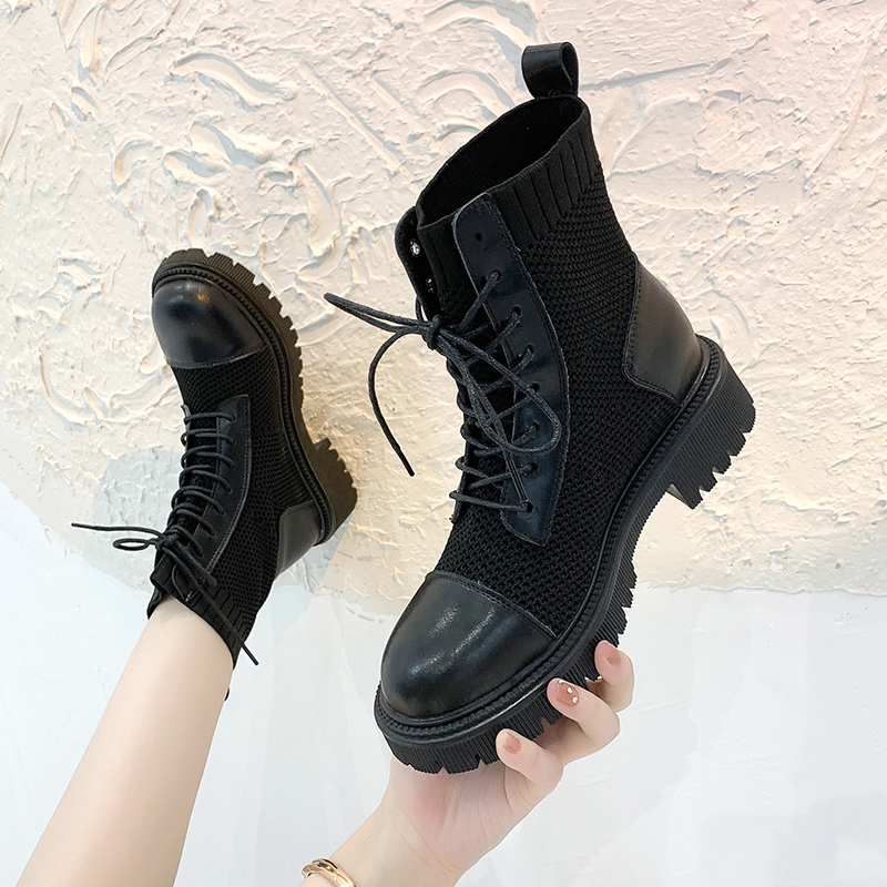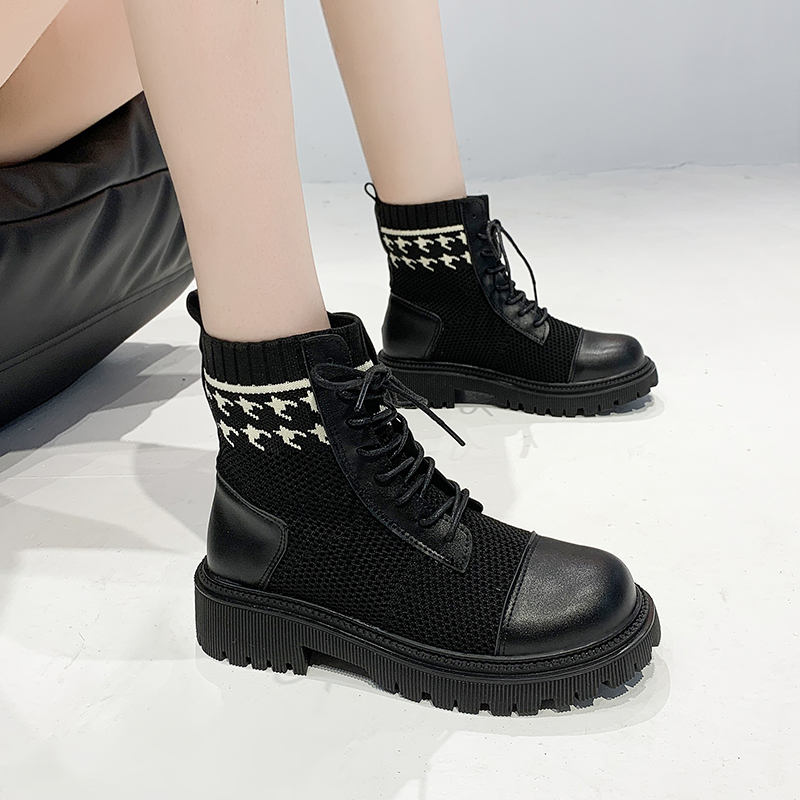 女靴子靴子韩版潮时尚保暖防滑短靴圆头中跟粗跟