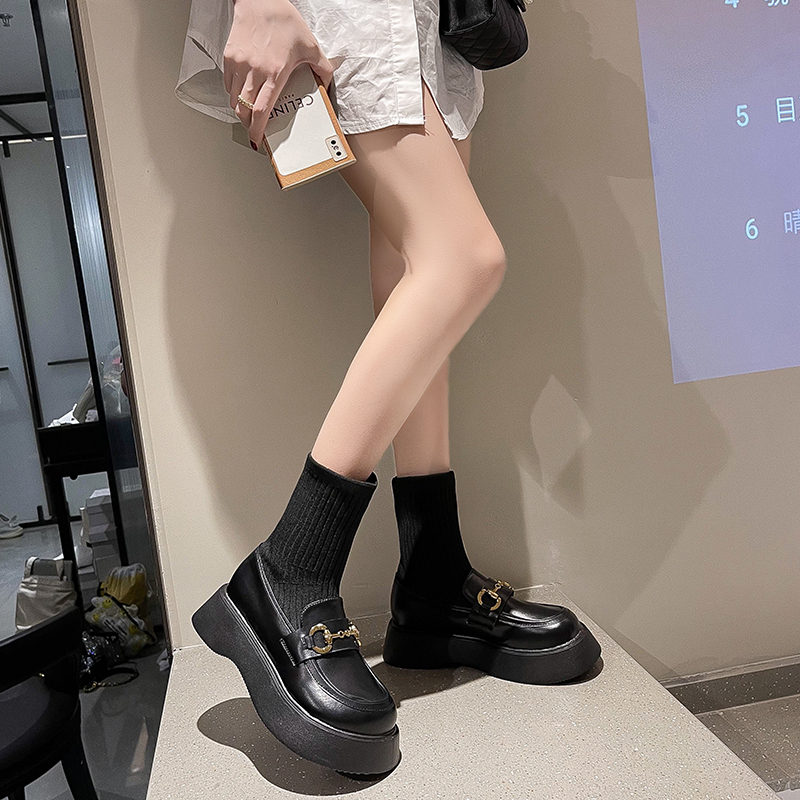 女靴子靴子韩版潮时尚保暖防滑短靴圆头中跟粗跟