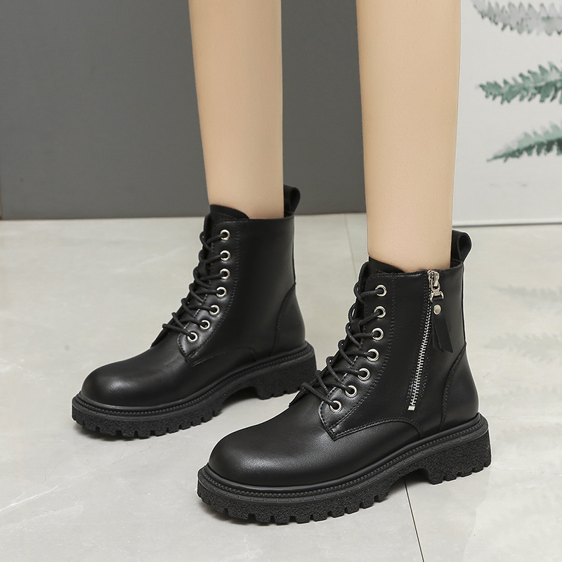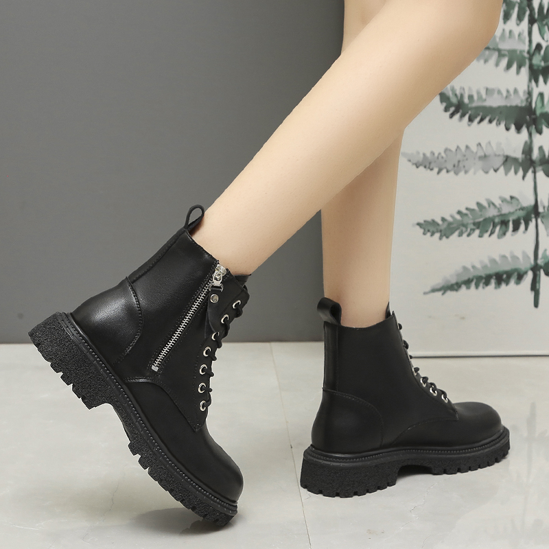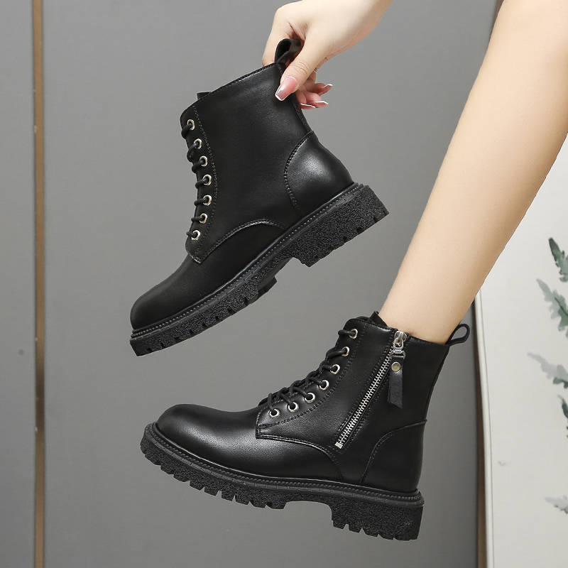 女靴子靴子韩版潮时尚保暖防滑短靴圆头中跟粗跟