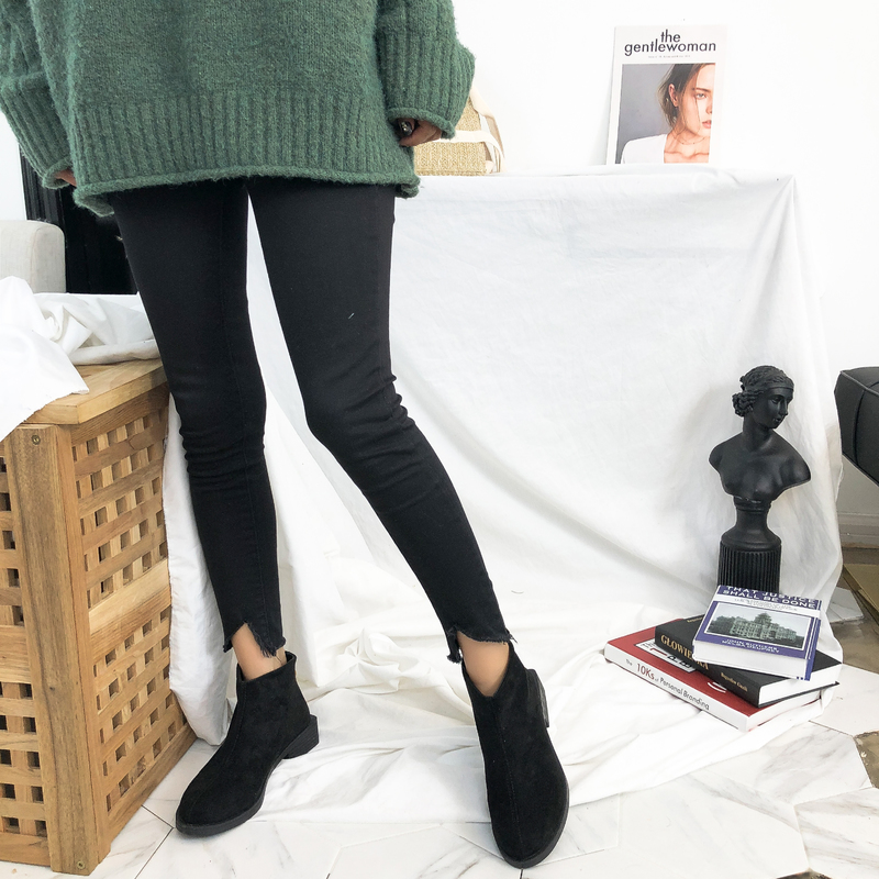 女靴子靴子韩版潮时尚保暖防滑绒面短靴圆头粗跟